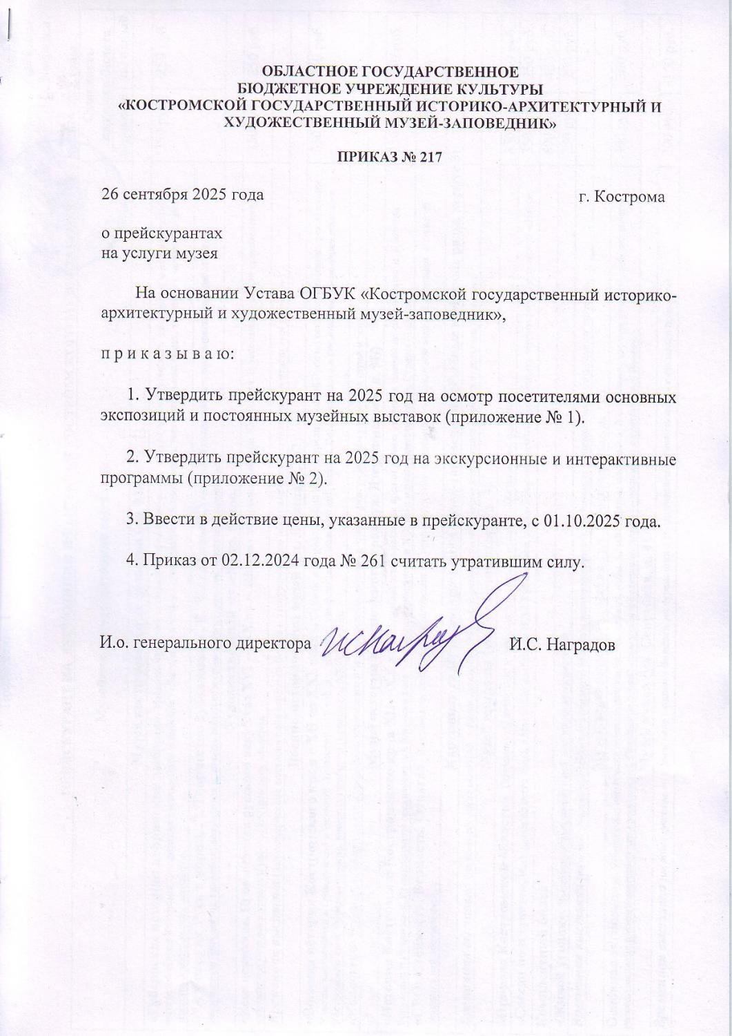 Приказ о реорганизации государственного учреждения культуры «Костромской государственный объединенный художественный музей» от 12 августа 2005 года.