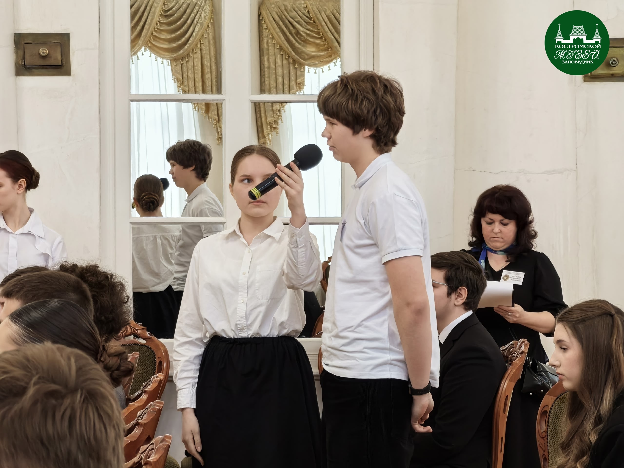 Сегодня в Белом зале Музея костромского дворянства прошли съёмки XIV сезона регионального этапа Всероссийской телевизионной гуманитарной олимпиады «Умницы и умники».