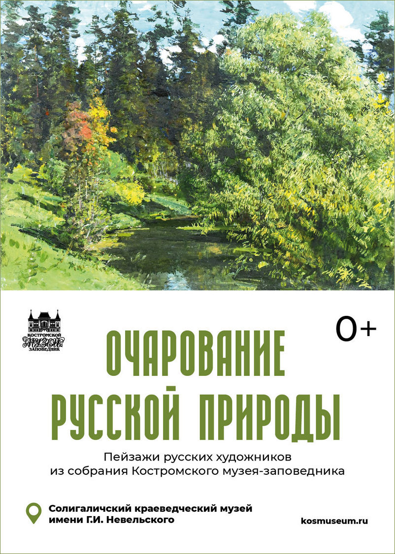 Торжественное открытие выставки «Очарование русской природы. Пейзаж в русской живописи XVIII–XX веков» состоится 9 апреля 2026 года в 15:00 в Солигаличском краеведческом музее им. Г. И. Невельского (г. Солигалич, ул. Советская, 2).