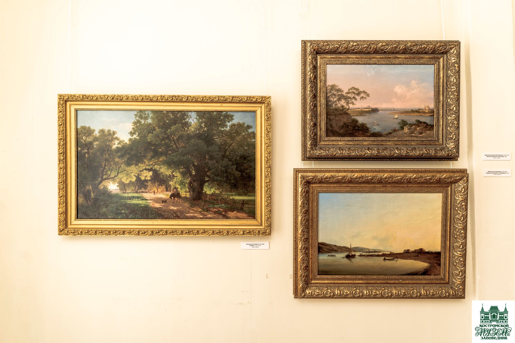 Все представленные произведения входят в собрание Костромского музея-заповедника. Особое место занимают работы уроженцев Костромской губернии, братьев Григория и Никанора Чернецовых. В 1838 году они совершили первое в России «художественное путешествие» по Волге. Их пейзажи, в том числе «Вид Ипатьевского монастыря» (1859), а также картина их спутника и ученика Антона Иванова «Перевоз через Волгу в Симбирске» (1846) — уникальные свидетельства зарождения национального пейзажа.