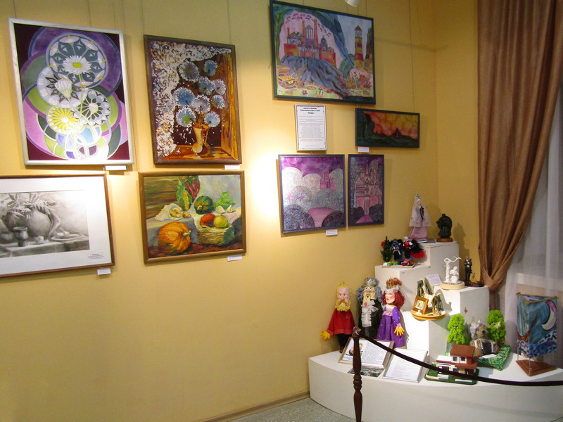 Представлено более 120 творческих работ учащихся и преподавателей муниципального бюджетного образовательного учреждения дополнительного образования: живопись, графика, батик, иконопись, ювелирное искусство, авторские куклы, керамика и т. д. Значительная часть экспонируемых произведений создана в 2017—2025 годах.